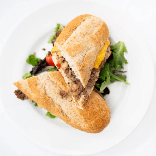 Shaved steak, onions, mushrooms, mozzarella cheese, served with a side of marinara