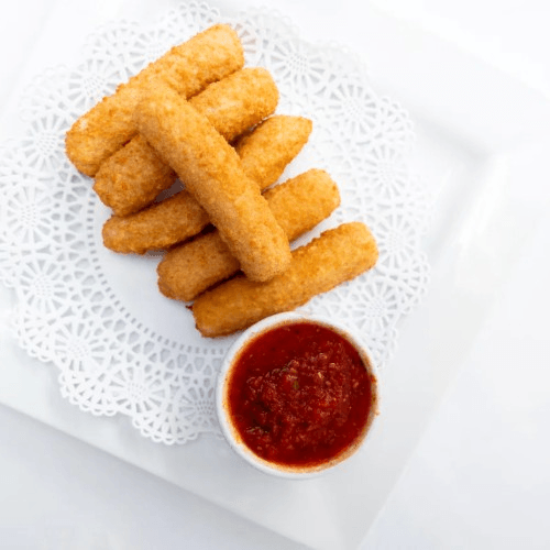 Breaded and fried eggplant topped with homemade marinara and cheese