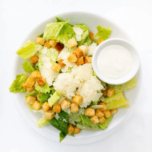 Grilled chicken, Romaine lettuce, croutons, shaved parmesan cheese and creamy caesar dressing.