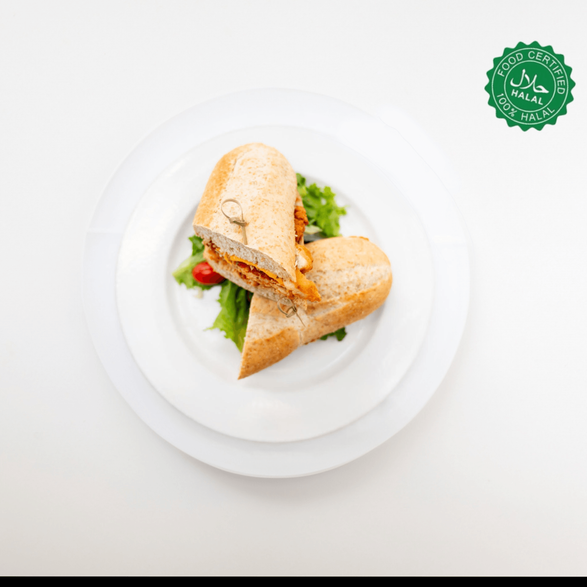Fried chicken breast, lettuce, tomato, and mayo (Halal)