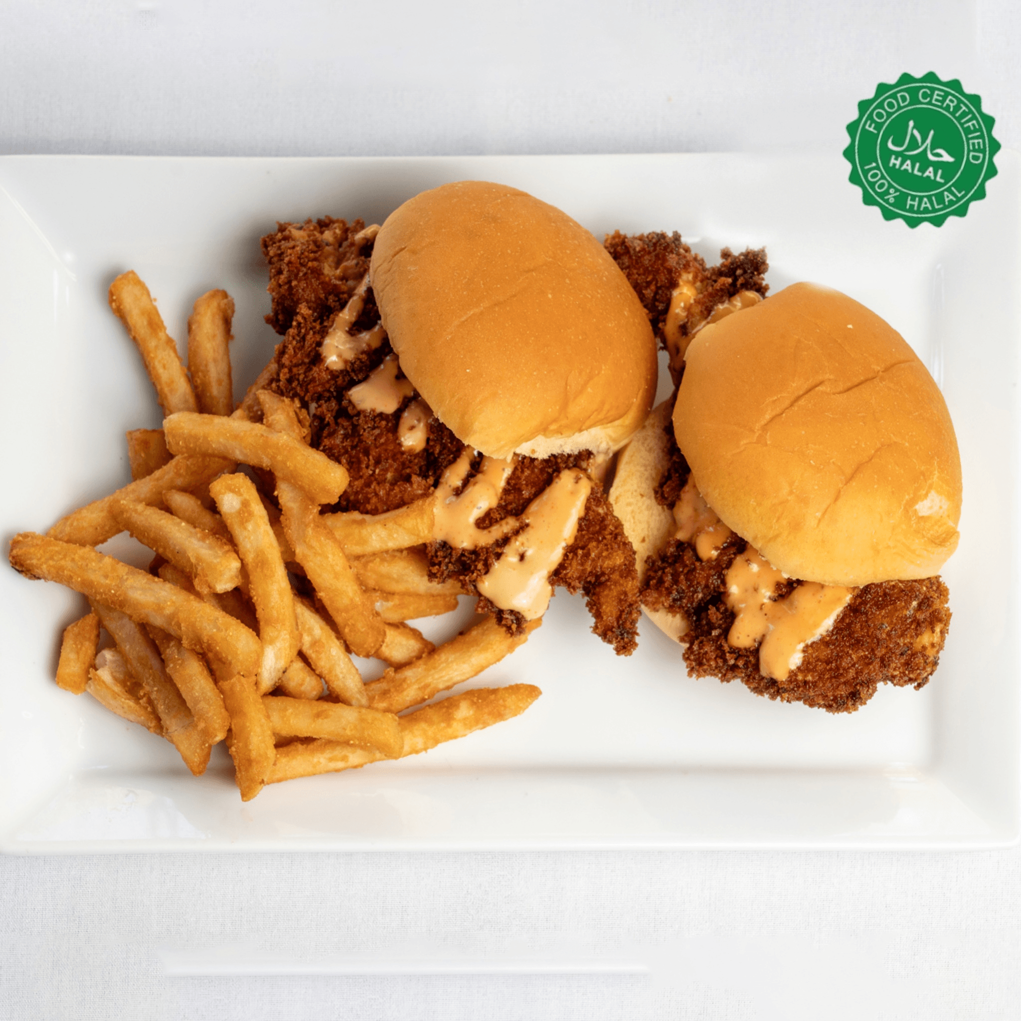 Fried chicken breast, pickles, Felcaro's sauce served with Fries (Halal)