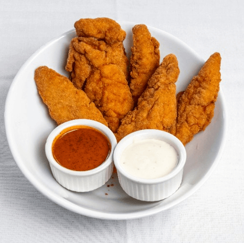6 Fried chicken tenders served with fries and choice of sauce
