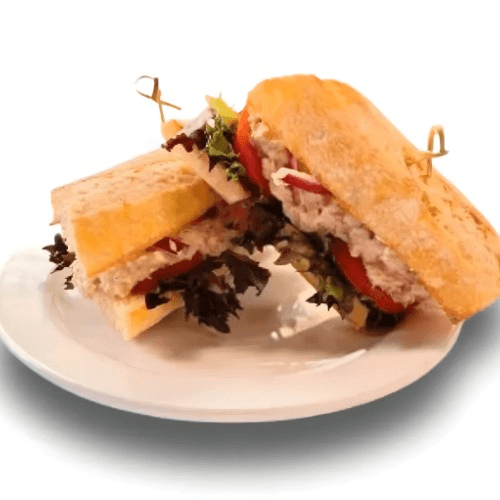 White albacore chunk tuna, mayo, lettuce, red onion, tomato, hot relish, and pickles