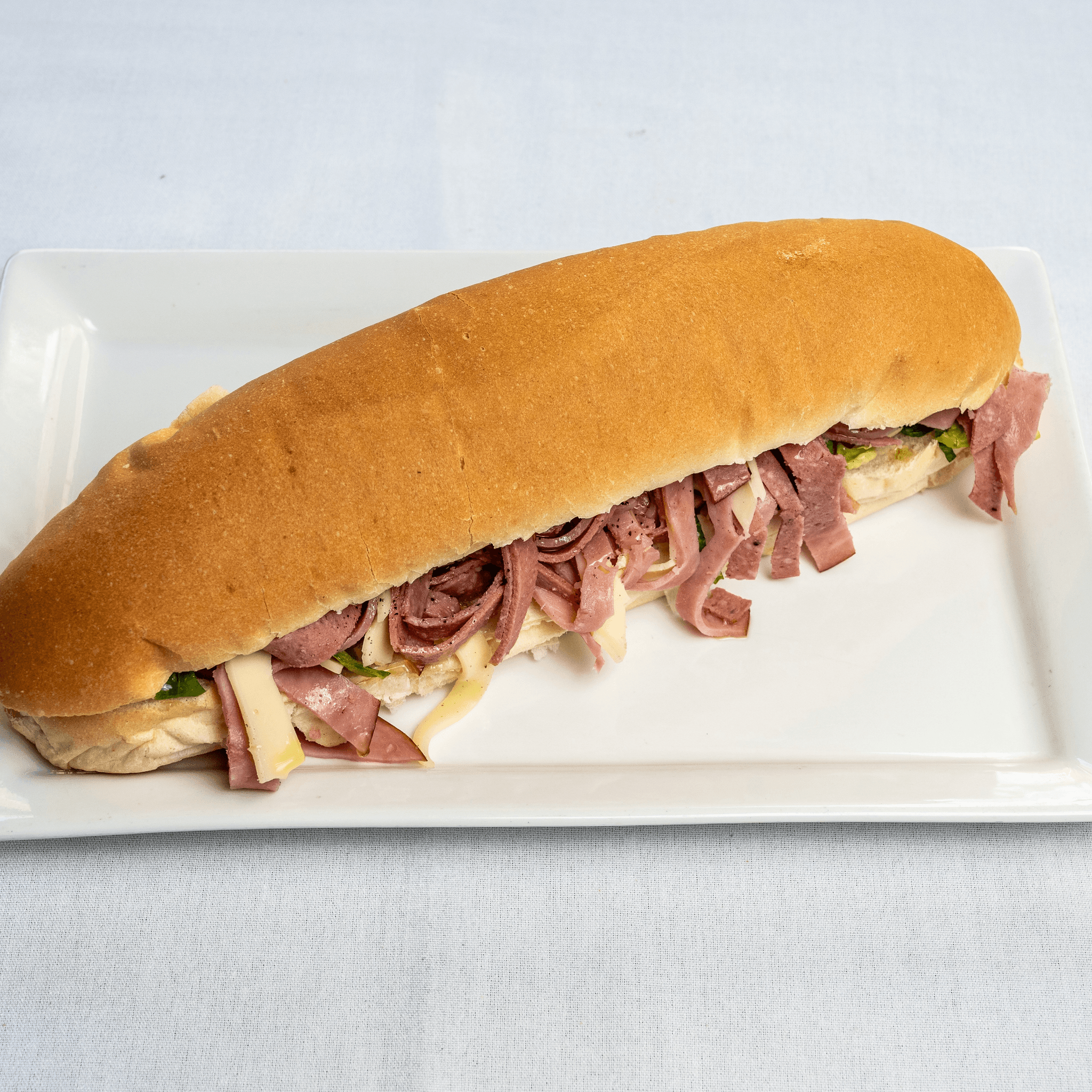 Turkey ham, beef salami, beef bologna, provolone cheese, lettuce, tomato, red onion, hot relish oil & vinegar