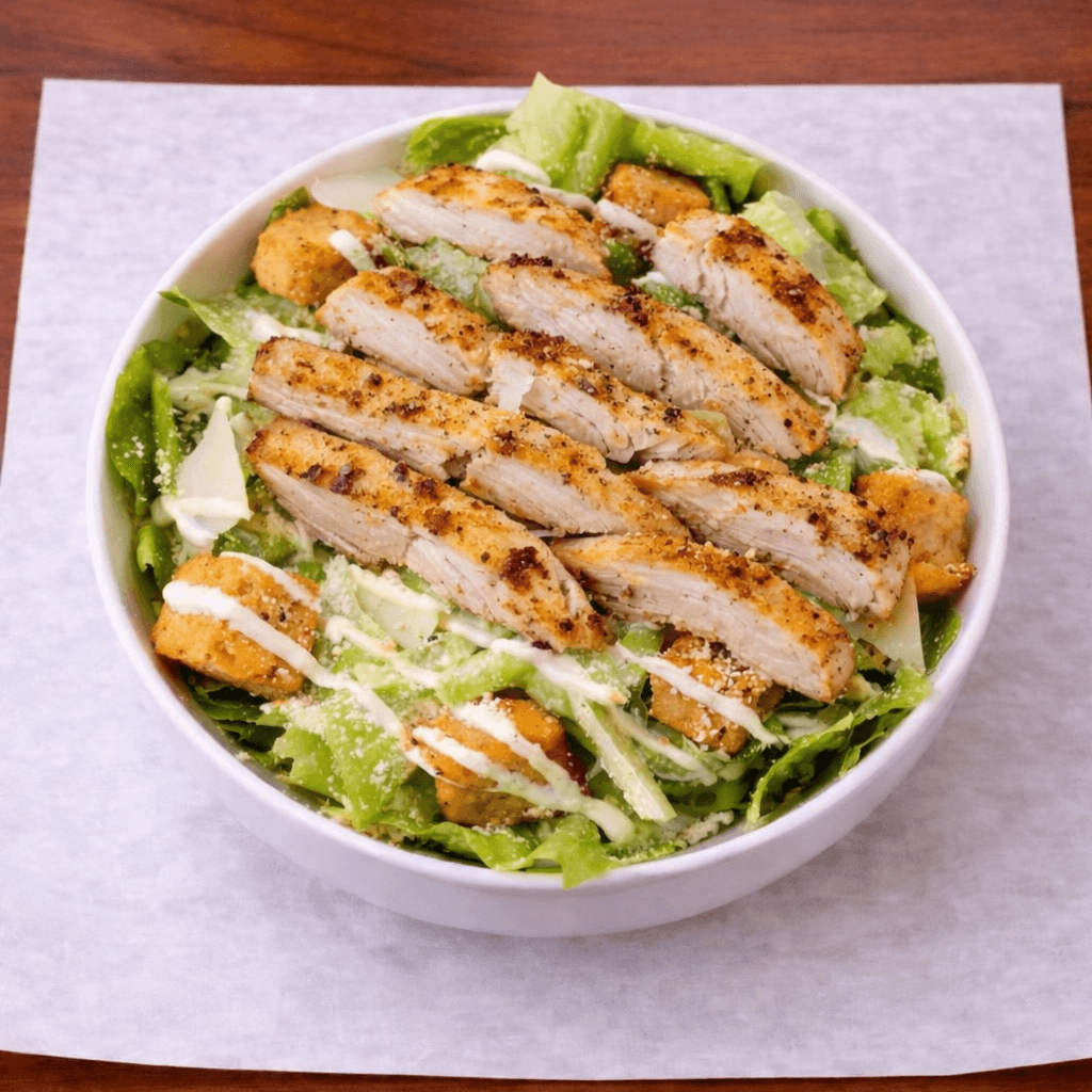 10 Fried Chicken Caesar Wraps. Crispy Fried Chicken, Lettuce, Parmesan Cheese, Croutons, and Caesar Dressing. Served on Flour Tortilla.