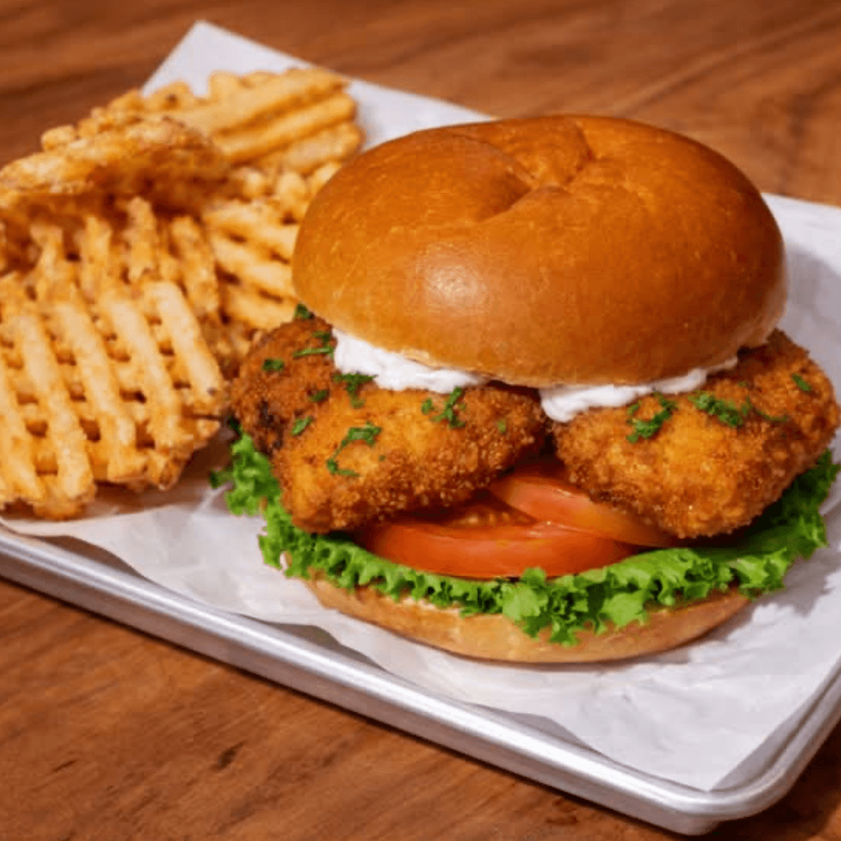 Lettuce, Tomato, Tartar Sauce. Served with fries