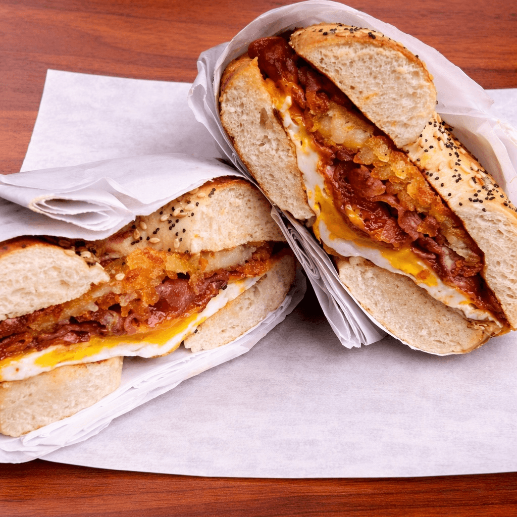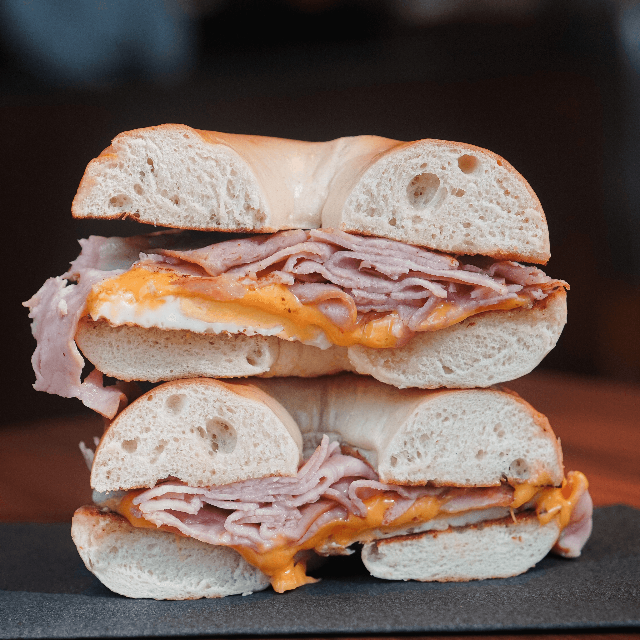 10 Breakfast Sandwiches. Choice of Bacon, Sausage, Ham, or No Meat with Egg and Cheese Choice of Bagel or Biscuit