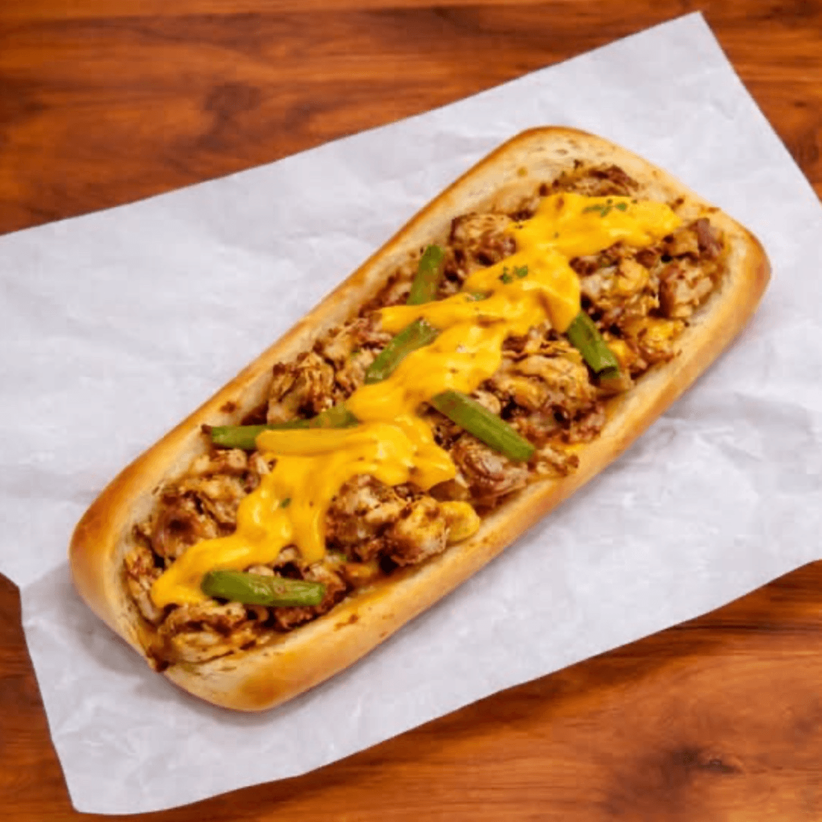 Chopped Grilled Chicken Breast, Grilled onions, Peppers, & American Cheese