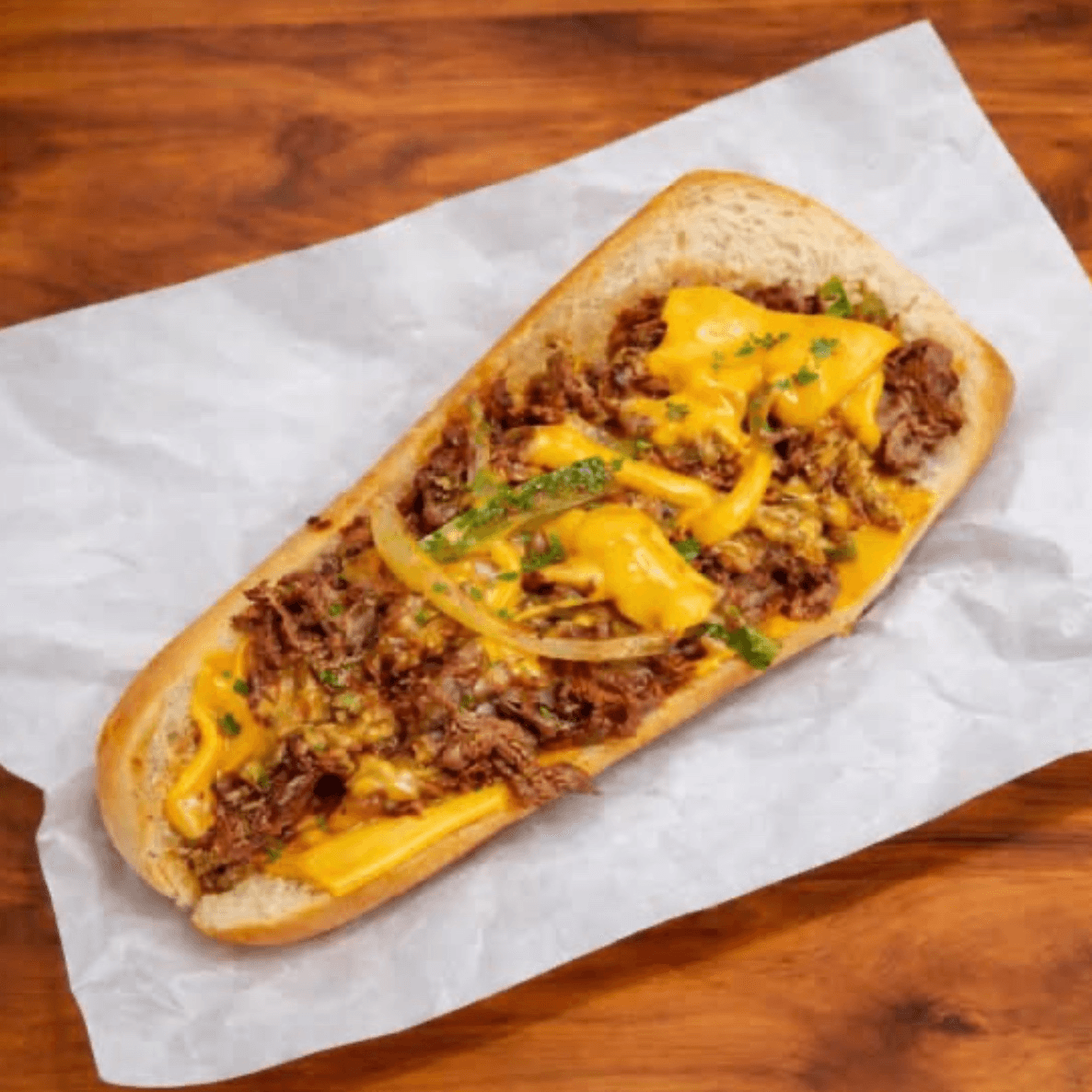 Shaved Steak, Grilled onions & Peppers on a toasted Sub Roll