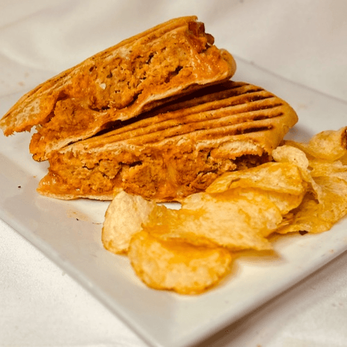 spicy shredded buffalo chicken topped with our three-cheese blend, garnished with chives