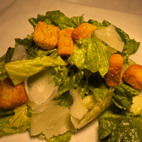 crispy romaine lettuce tossed with creamy Caesar dressing, croutons, and parmesan cheese