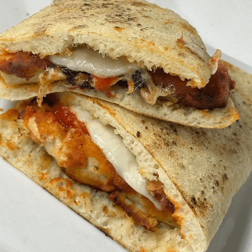 fresh-baked pocket made from our pizza dough, filled with Italian seasoned breaded chicken breast, marinara sauce, and provolone cheese