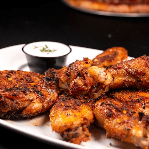 Duck confit chicken wings slow-cooked in duck fat, dusted with house-made spice rub, then flame-seared for fall-off-the-bone tenderness, served with ranch or blue cheese...