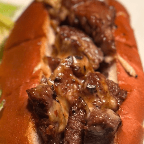 our signature marinated steak tips chopped in a Brioche roll with American cheese