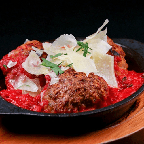 our house blend of veal, pork, beef, and herbs, smothered with marinara sauce and topped with shaved parmigiano