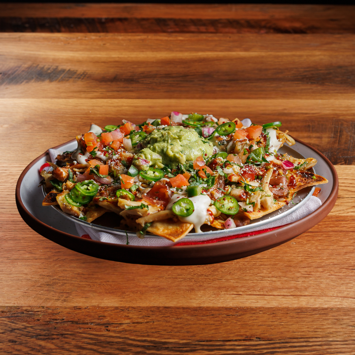 Chipotle mezcal sauce, hatch chili gouda, hot pickled onions