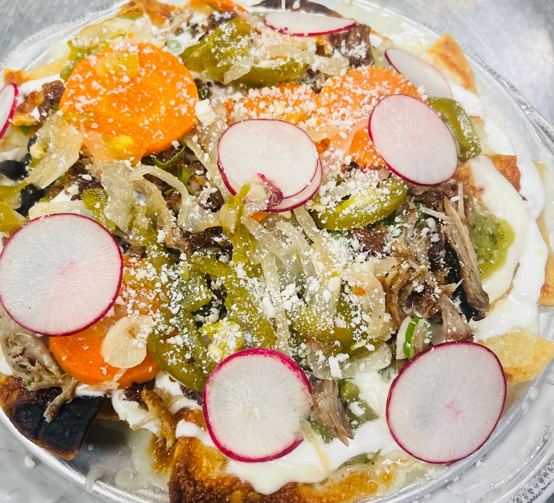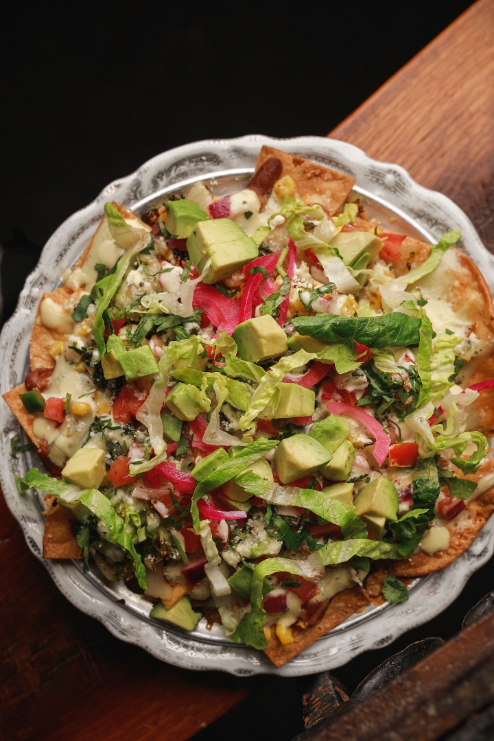 black beans, cheese sauce, salsa verde, crema, jalapeño