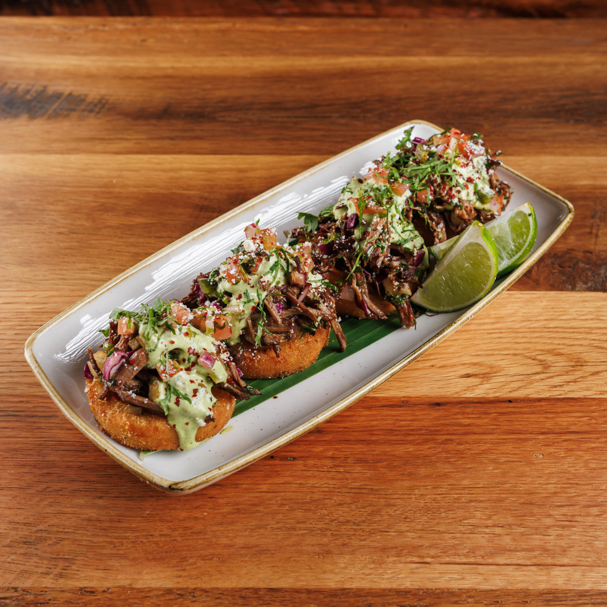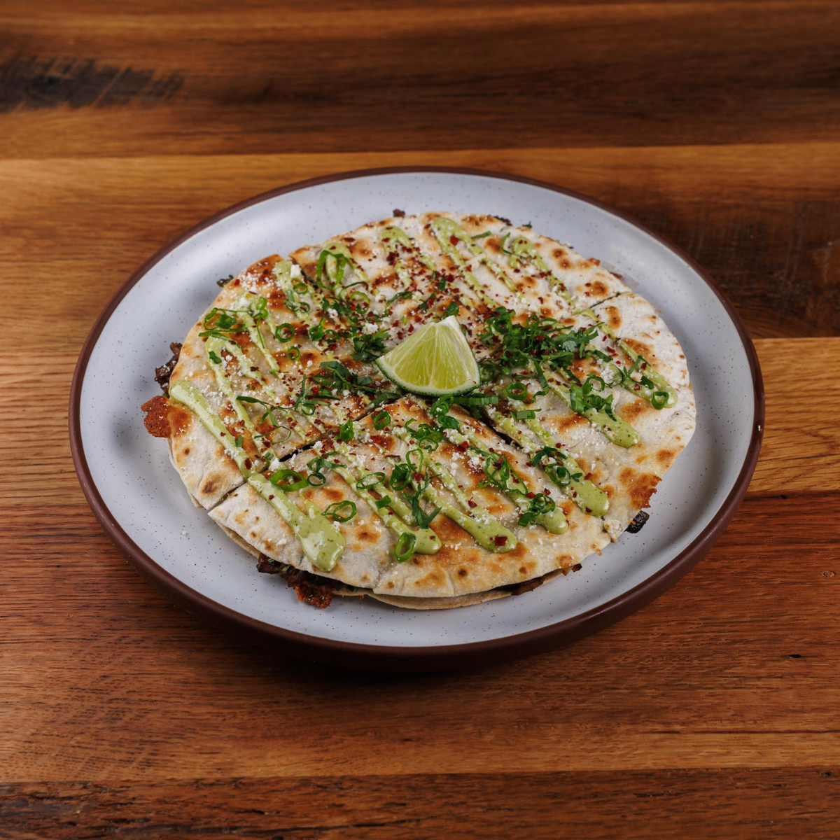 red chili beef short rib, crispy cheese Gordita, jalapeño cream, pinto beans