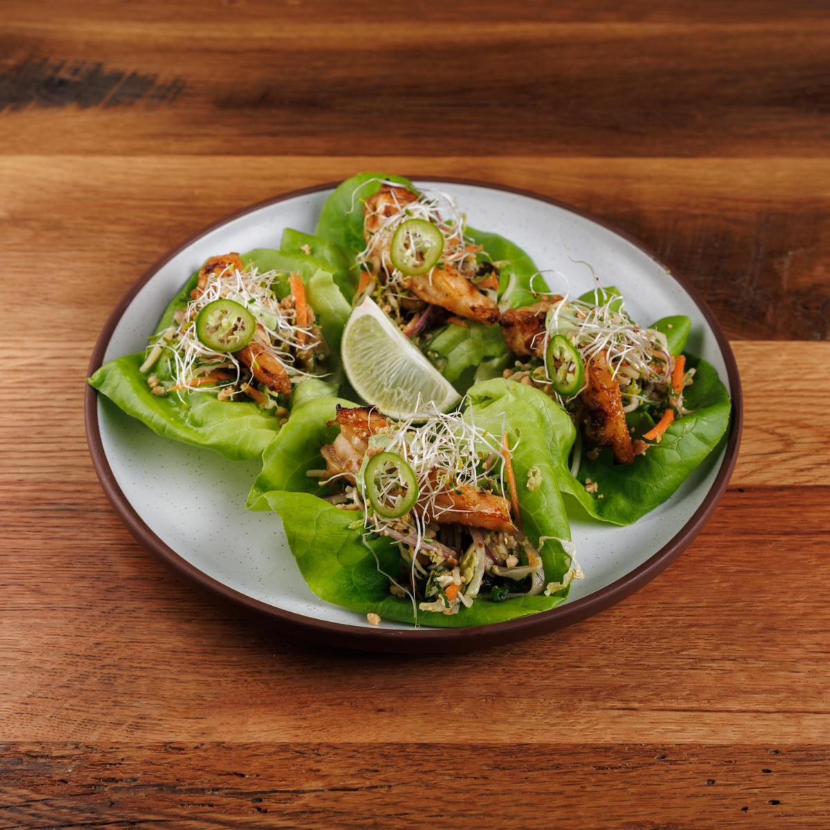 grilled mexican blue prawns, green garlic sauce sweet peanut slaw, fidelity noodles