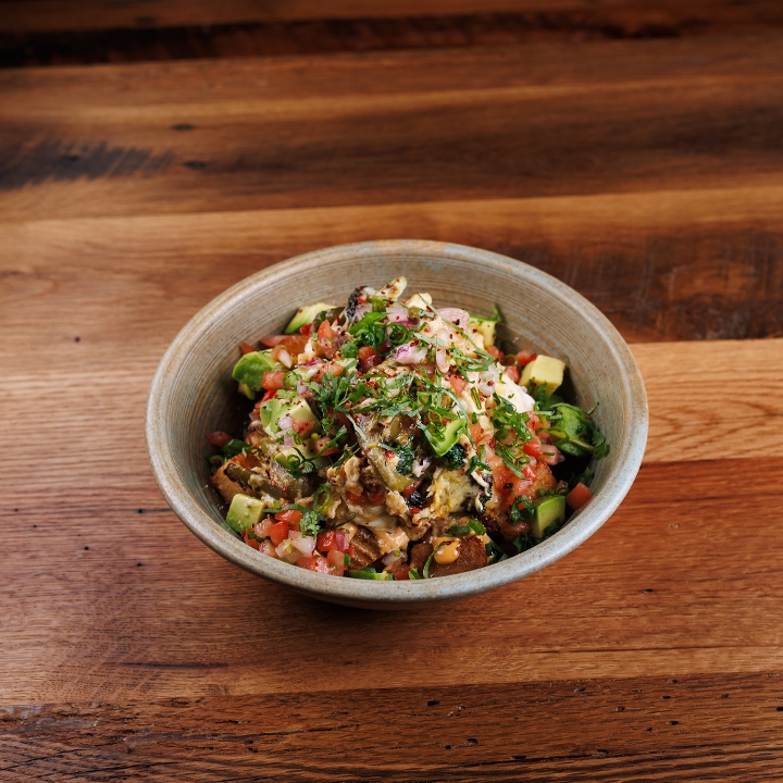 scrambled eggs, broccoli, onions & peppers, home fries, habanero cheddar, sofrito, avocado, chipotle crema