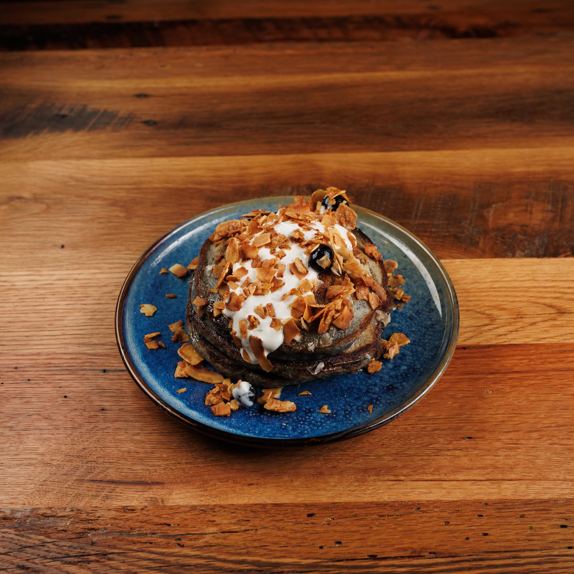 coconut crema, mezcal maple syrup, blueberries, almond crunch