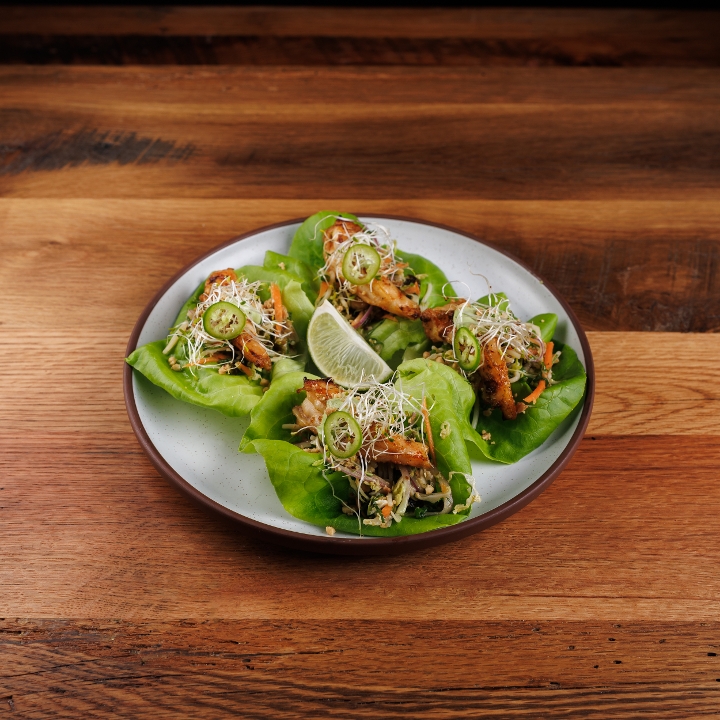 grilled mexican blue prawns, green garlic sauce, sweet peanut slaw, fidellini noodles