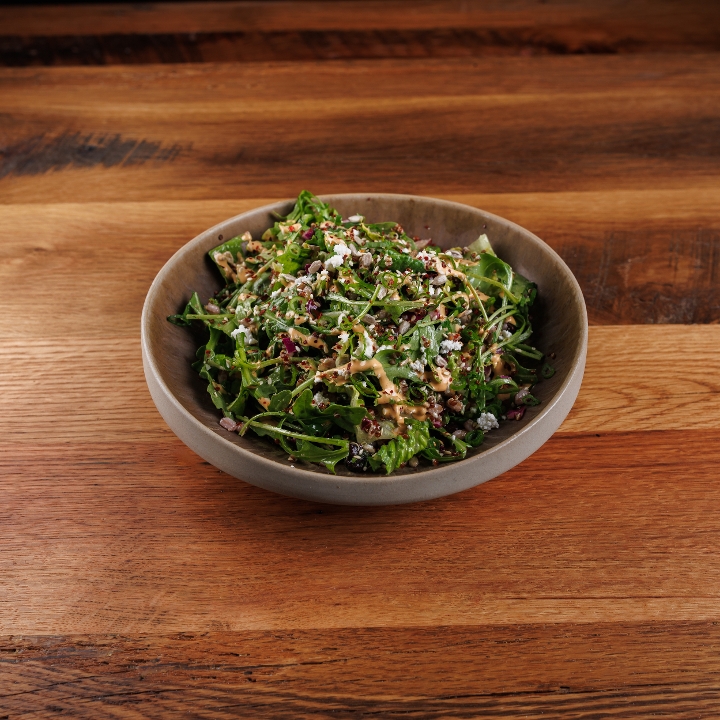 romaine, hibiscus farro, quinoa, black beans, shaved brussels, chipotle feta-ranch, toasted sunflower seeds