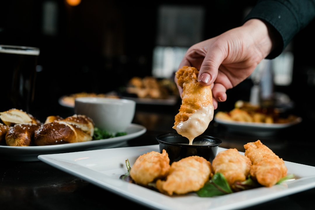 deep fried until golden brown, served with honey mustard
