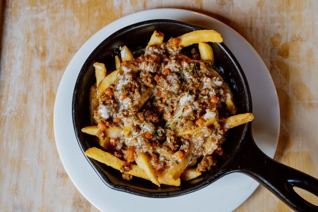 crispy house fries topped with slow braised beef gravy & drizzled with creamy irish cheddar sauce