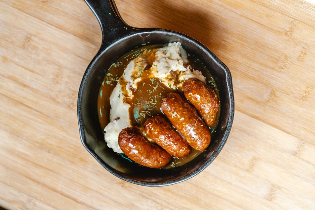 irish sausages, red bliss whipped potatoes, rich herb & onion gravy