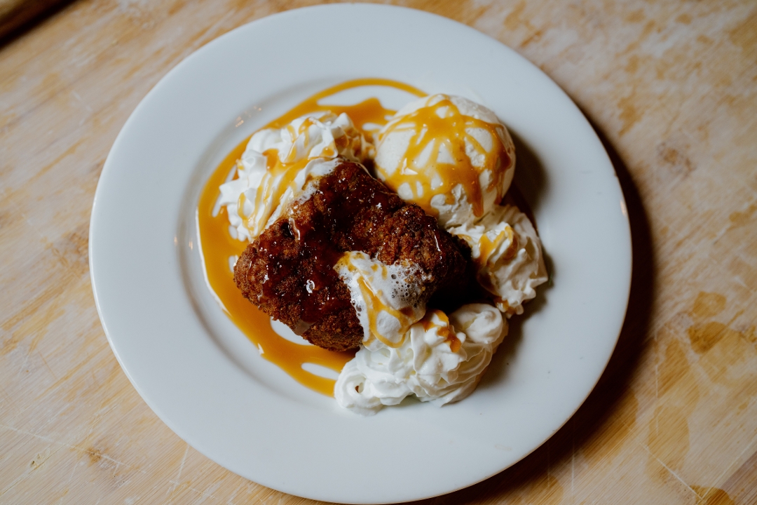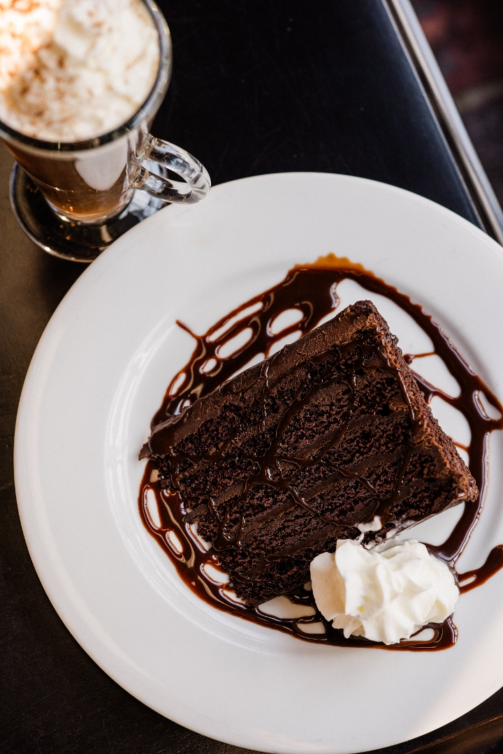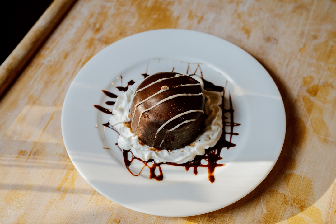 served with chocolate sauce & whipped cream