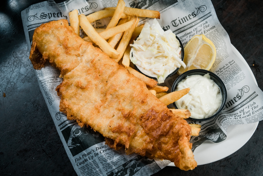 golden & crisp haddock in a lager batter, served with house fries, coleslaw & tartar sauce
