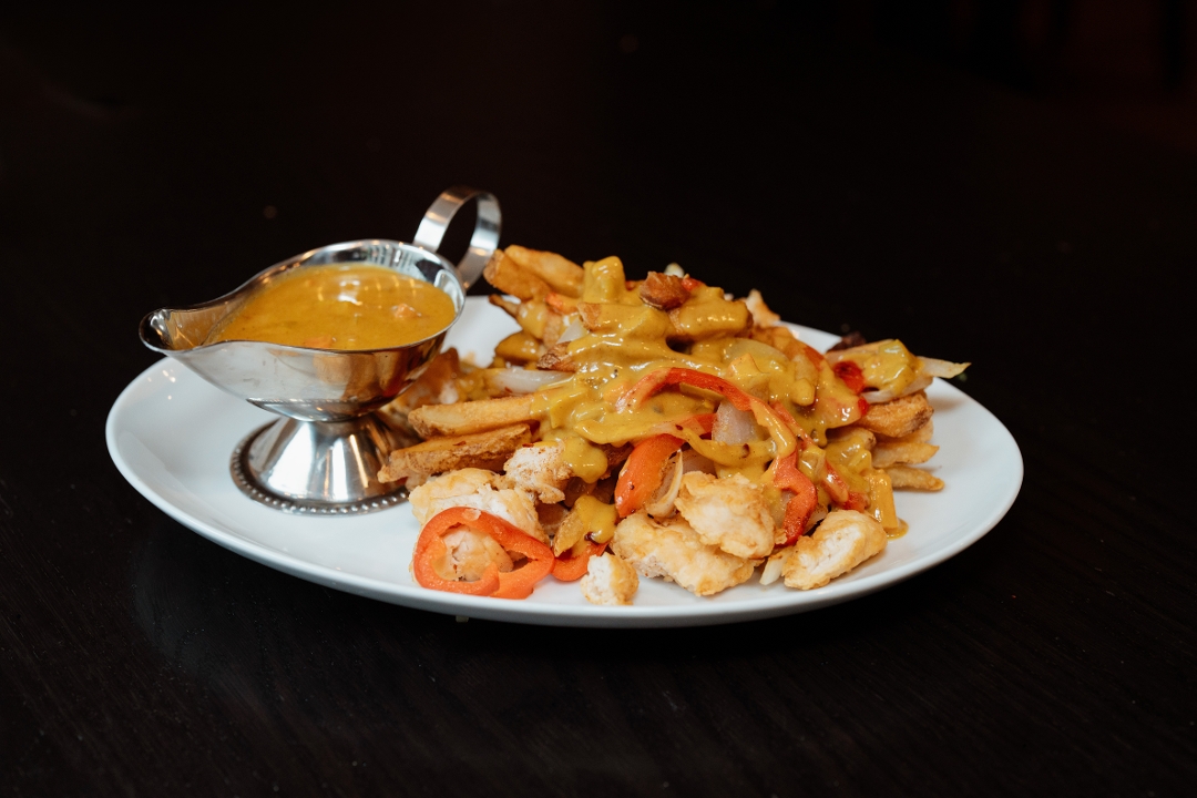 a new irish tradition – fried chicken bites, house fries & sautéed peppers & onions tossed in a traditional spice mix, served with curry sauce