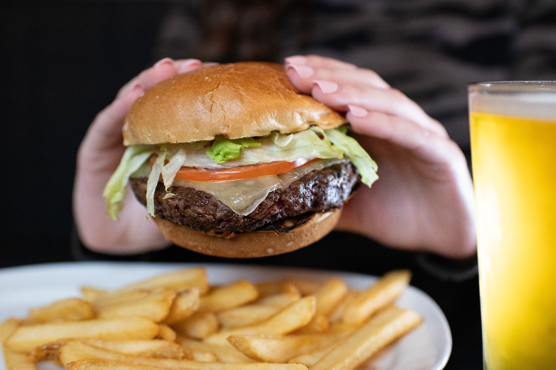 signature blend, shredded lettuce, tomato & american cheese on a toasted potato roll