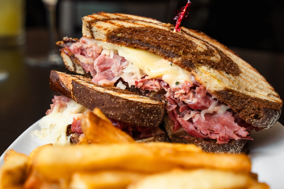 corned beef, swiss cheese, sauerkraut & thousand island dressing on pressed marble rye
