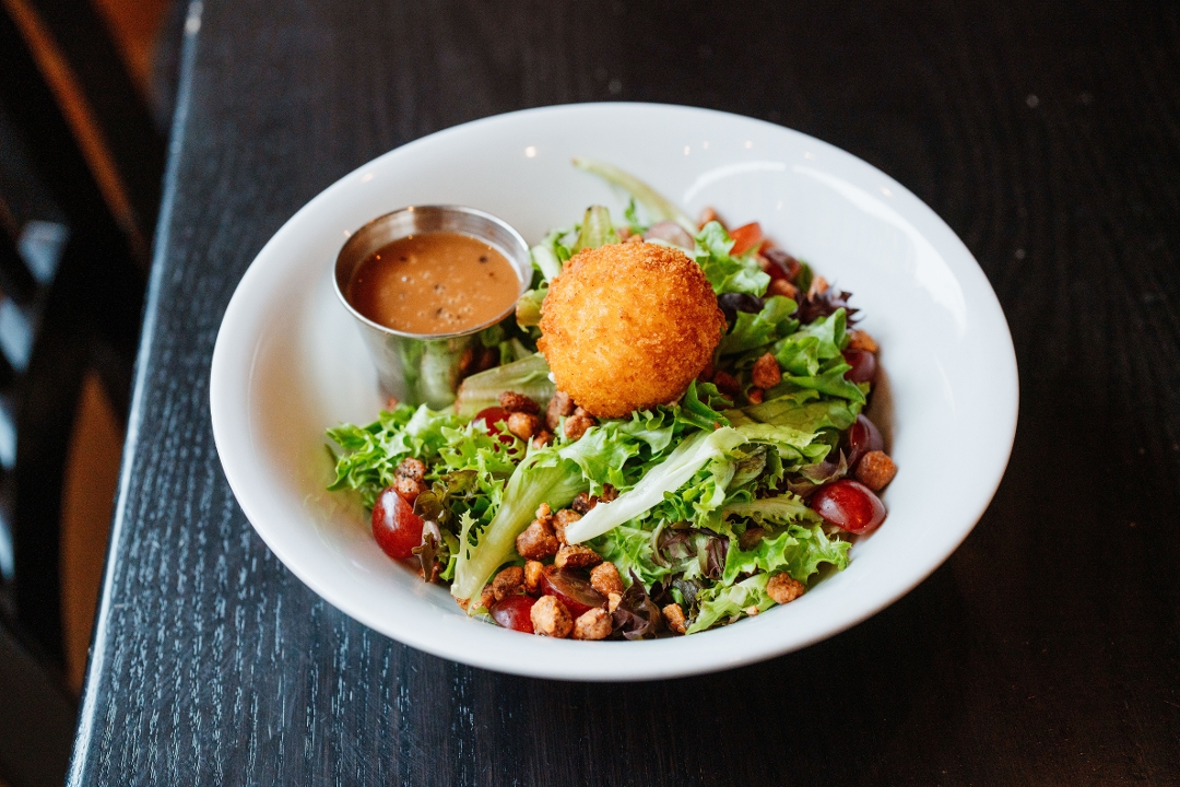 mixed greens, crispy fried goat cheese, candied pecans, red grapes & balsamic vinaigrette