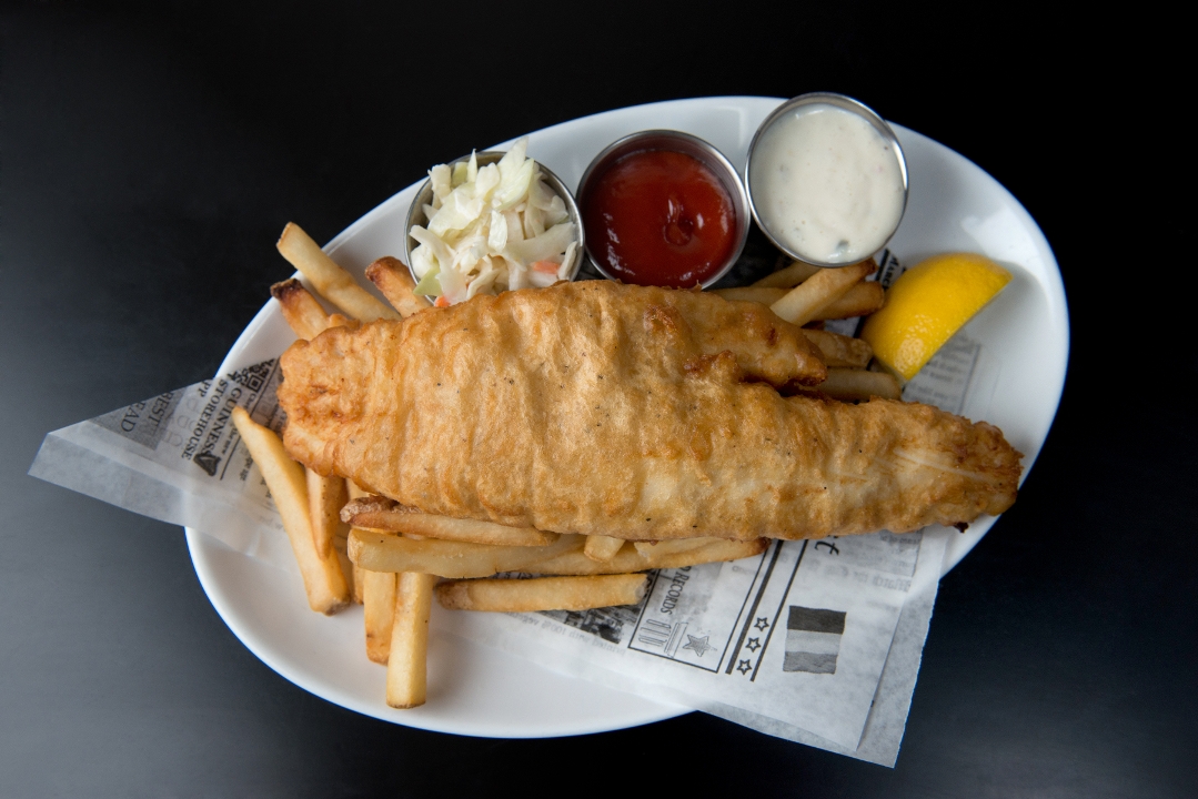 golden & crisp fresh haddock in a lager batter served with fries, coleslaw & caper tartar sauce