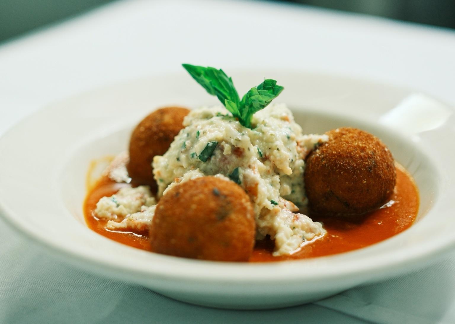 Fontina and Basil Risotto Fritta Oven Roasted Tomato Ragu