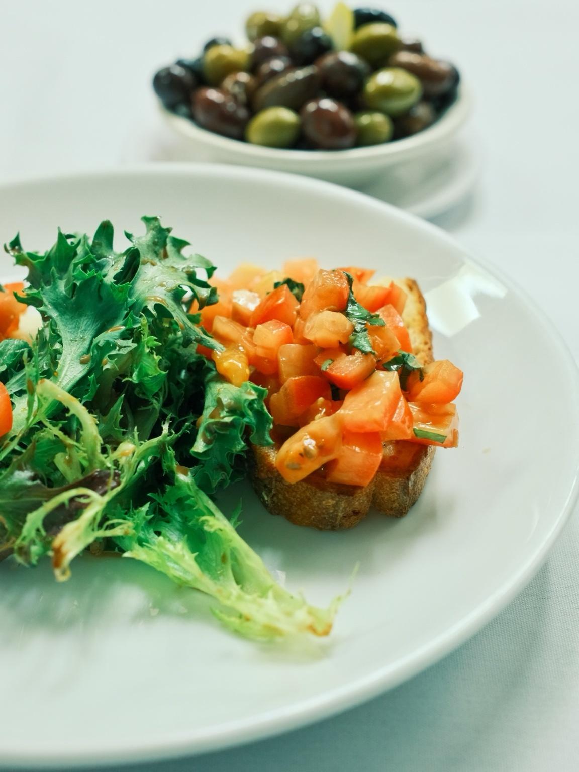 Seared Spinach, Angel Hair Torta, Sicilian Tomato, Olives and Capers