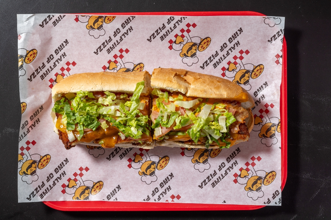 Halftime Sauce, Mozzarella Cheeses, Pepperoni, Sausage, Meatballs, Bacon